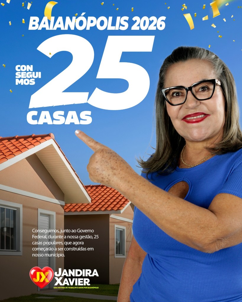 A construção de unidades habitacionais em Baianópolis, dentro do MCMV – NOVO PAC, NÃO É CONQUISTA DA ATUAL GESTÃO. É resultado de trabalho técnico, articulação política e capacidade administrativa da gestão passada, liderada pela ex-prefeita JANDIRA SOARES SILVA XAVIER.