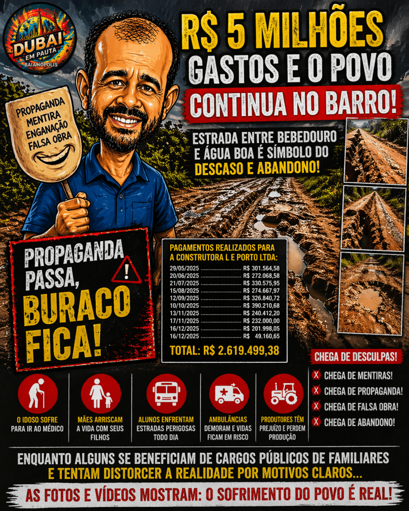 Enquanto a gestão municipal insiste em discursos otimistas, fotos produzidas e narrativas ensaiadas, a realidade da zona rural de Baianópolis segue gritando mais alto do que qualquer propaganda oficial.