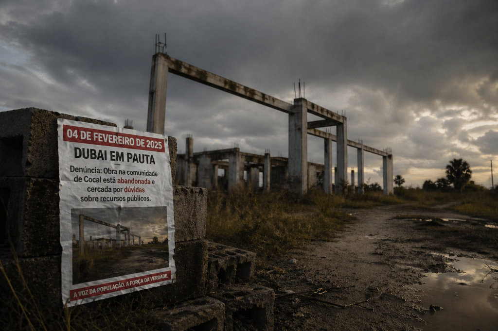 Em 04 de fevereiro de 2025, o Dubai em Pauta trouxe a público a situação da obra da comunidade de Cocal, cercada por abandono, questionamentos e indignação popular.